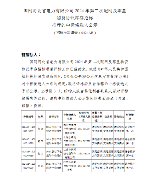 祝賀我公司中標(biāo)國網(wǎng)河北省電力有限公司 2024年第二次配網(wǎng)及零星物資協(xié)議庫存招標(biāo)項目